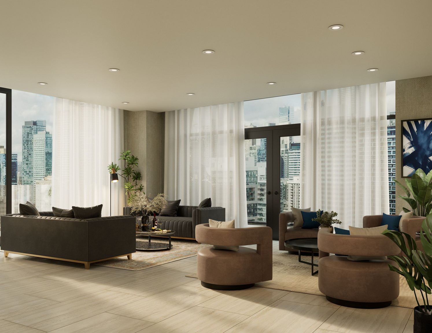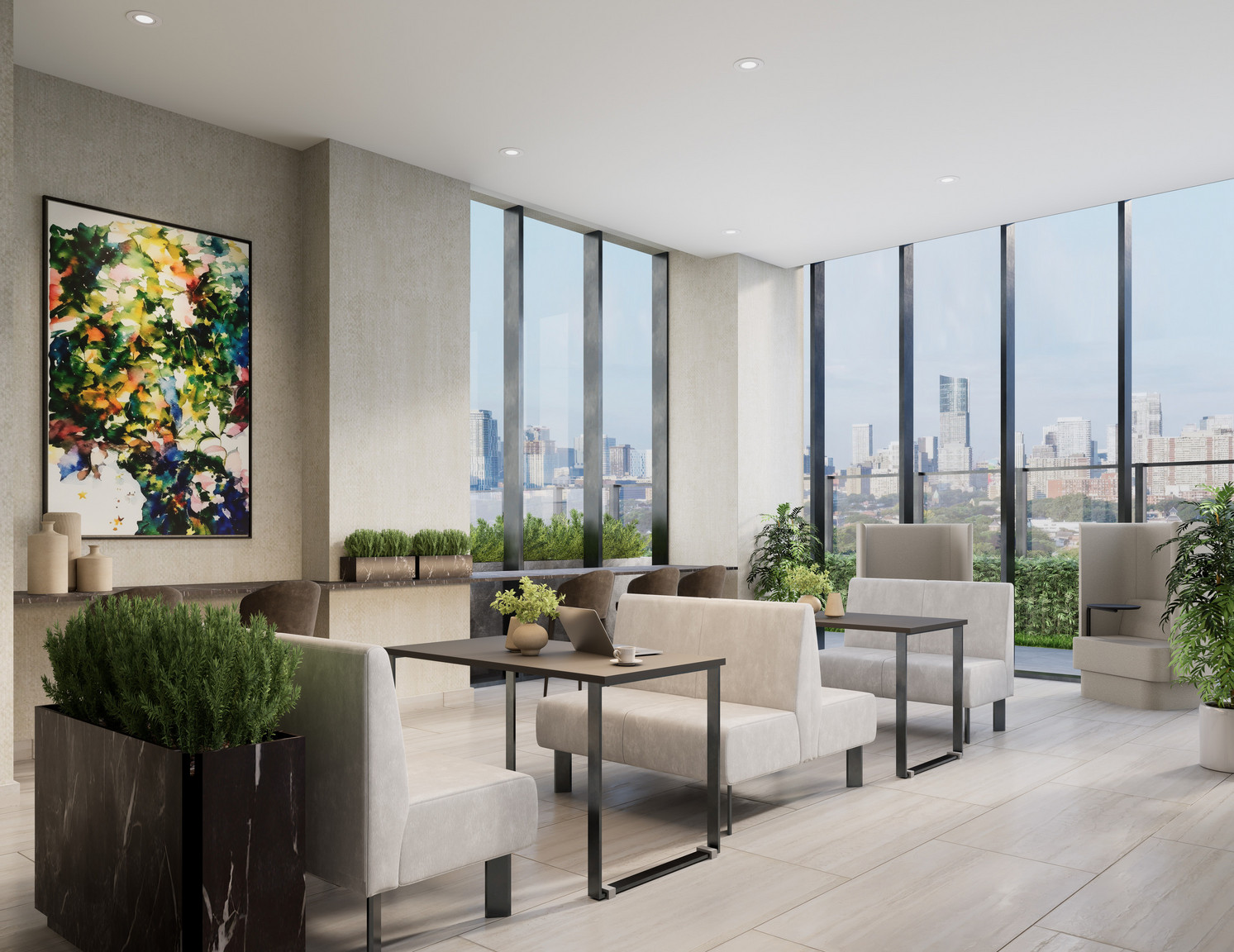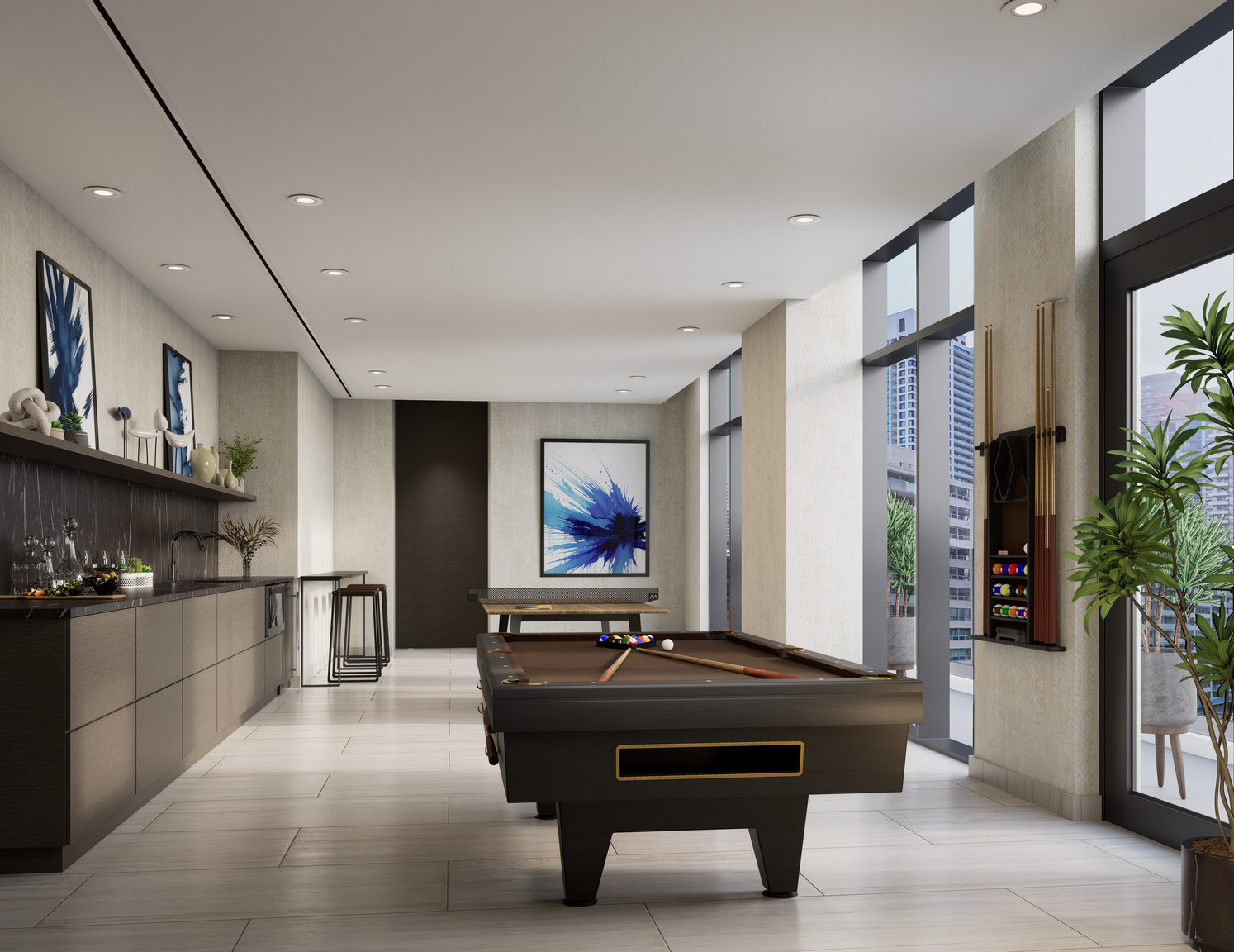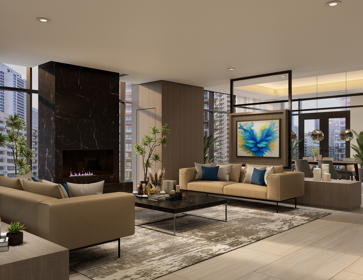 SVNTY’s amenity spaces elevate everyday living with a professionally designed fitness studio, yoga space, and outdoor terraces. Have fun in the games lounge, host a dinner in the private dining room with a catering kitchen, or a relaxing get together in the wine lounge with close friends. Pet-friendly spaces ensure that every member of the family feels welcome.